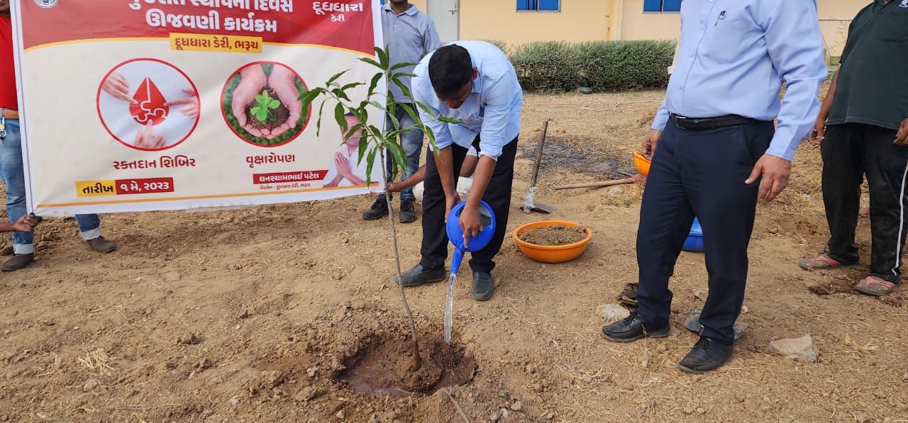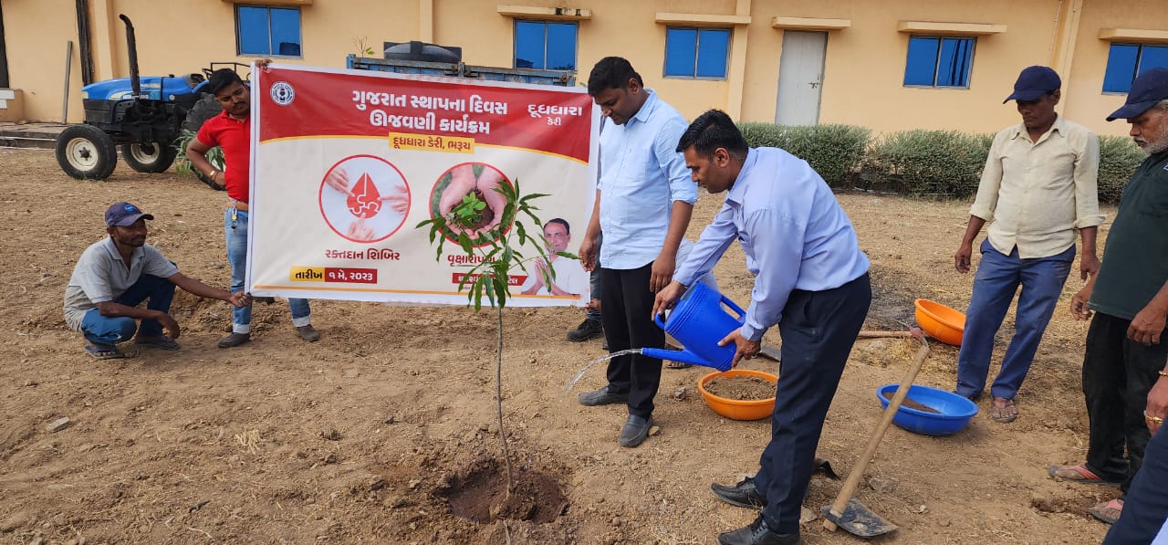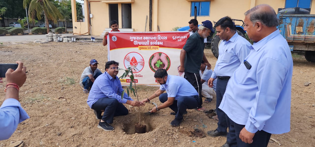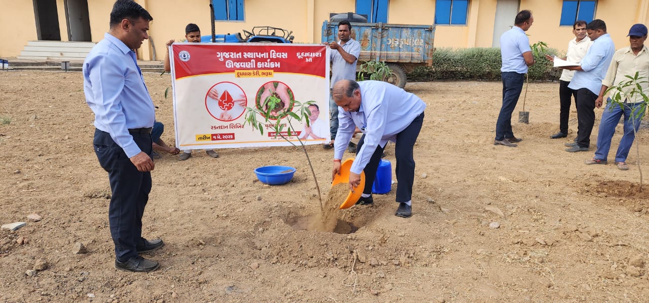 ગુજરાત સ્થાપના દિન નિમિત્તે વૃક્ષારોપણ અને રક્તદાન શિબિરના કાર્યક્રમ યોજવામાં આવ્યા હતા.