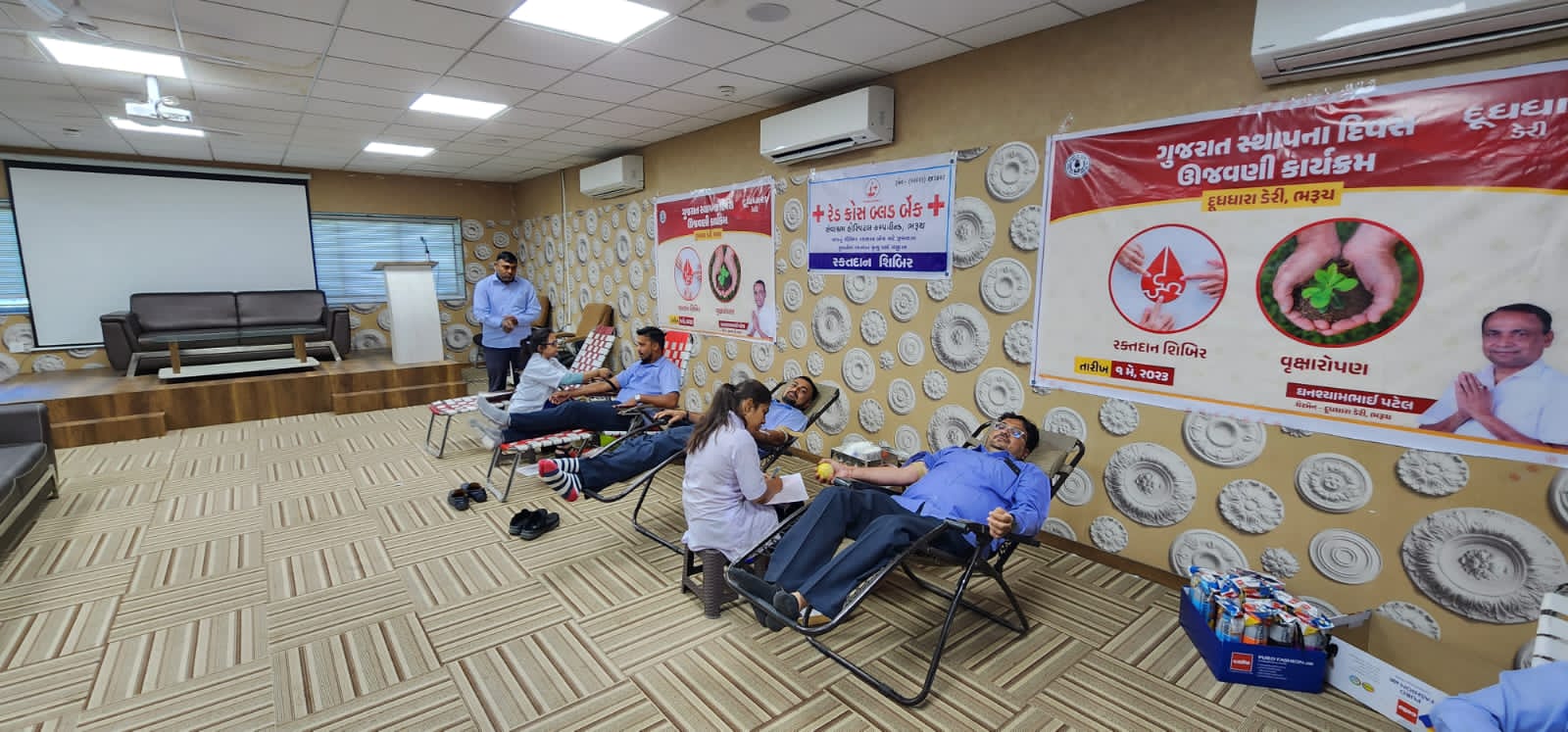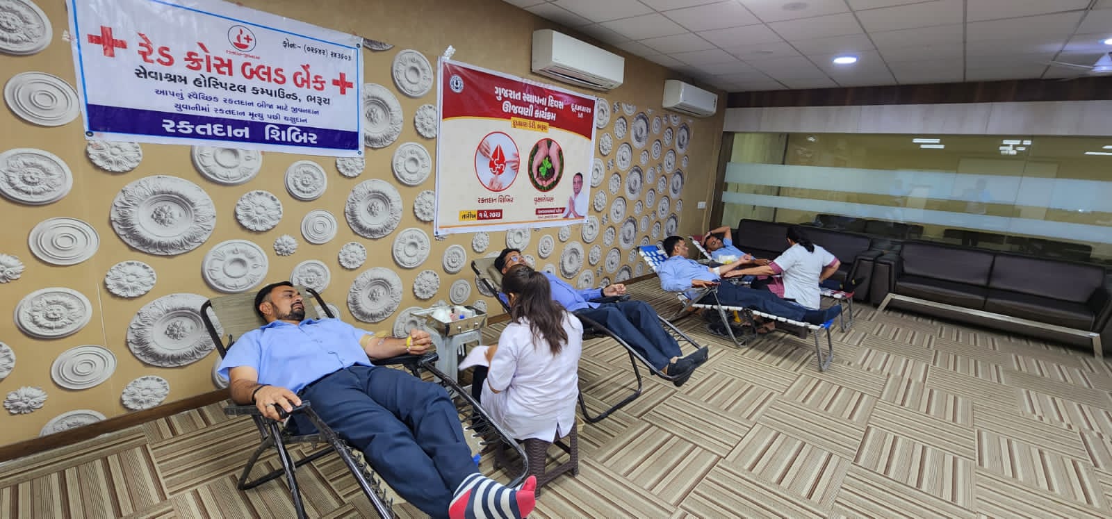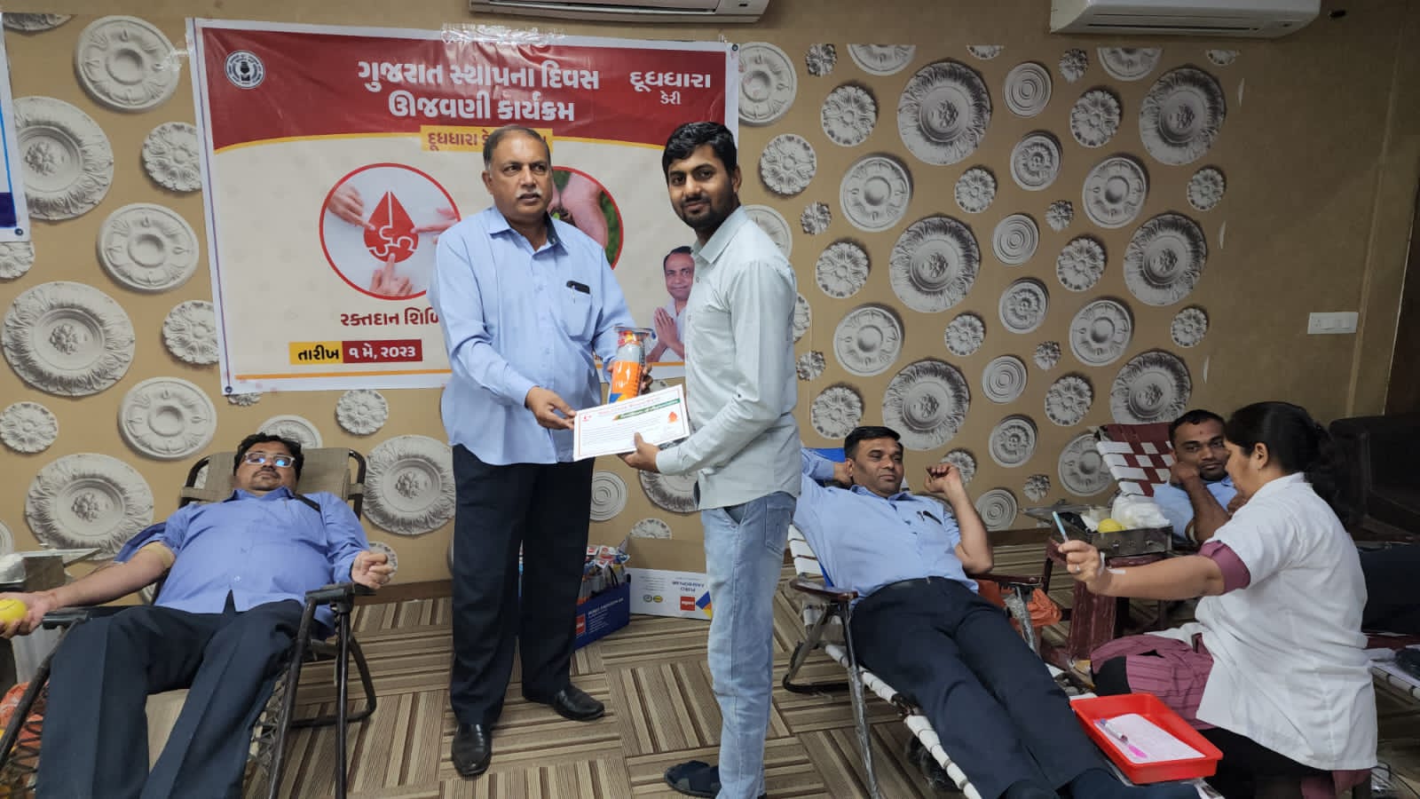 ગુજરાત સ્થાપના દિન નિમિત્તે વૃક્ષારોપણ અને રક્તદાન શિબિરના કાર્યક્રમ યોજવામાં આવ્યા હતા.